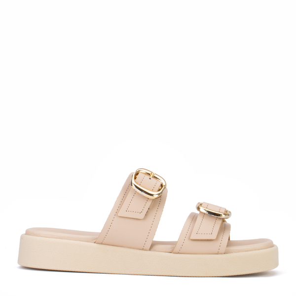 Sandália Casual Slide Duas Tiras Detalhe Fivelas Sua Cia
