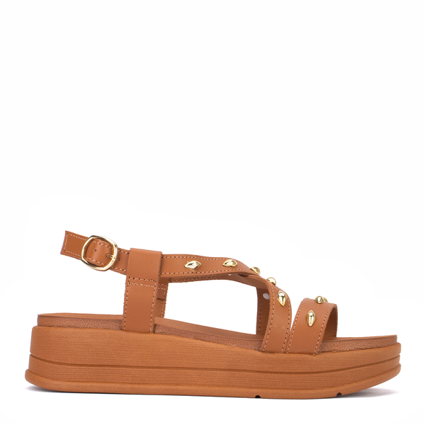 SANDÁLIA FLATFORM CASUAL APLICAÇÃO ILHÓS FECHAMENTO FIVELA SUA CIA