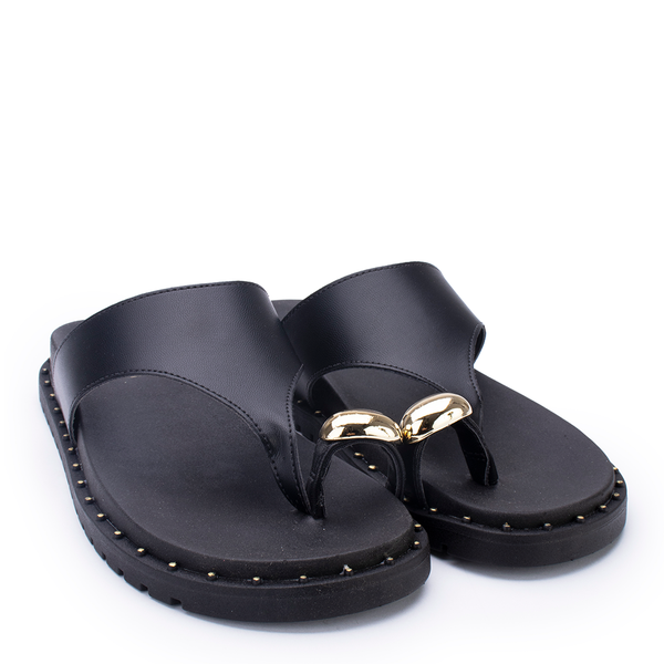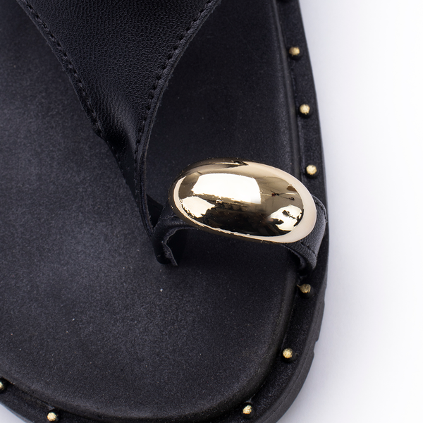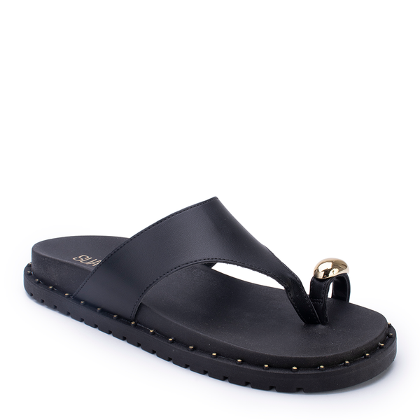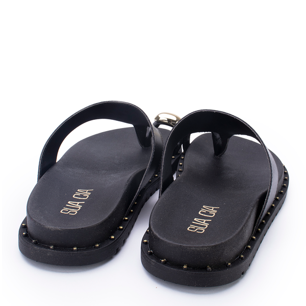 Sandália Flatform Casual Dedo Detalhe Tachas Sua Cia Preto