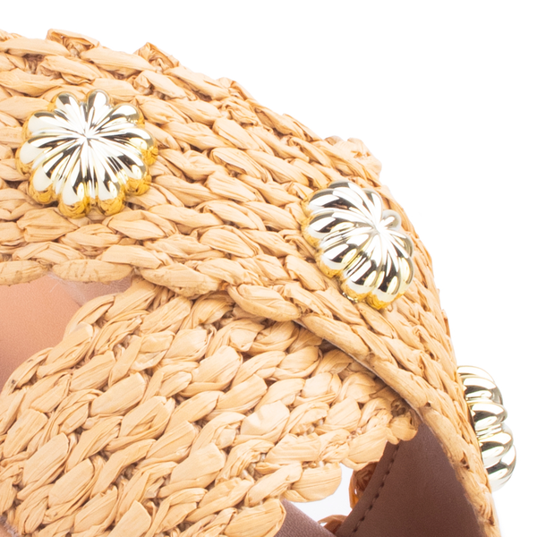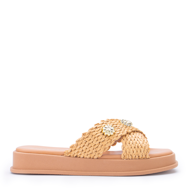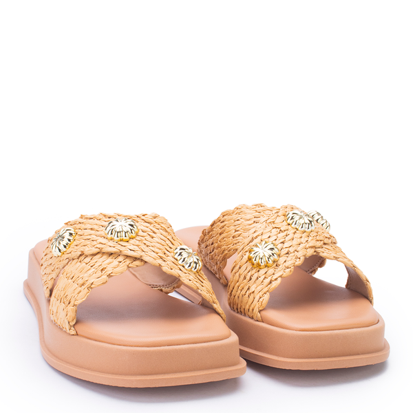 O slide trançado Sua Cia é o toque artesanal que o seu look de verão precisa! Com tiras em efeito palha e aplicações douradas delicadas, ele combina conforto e estilo para dias leves e cheios de charme. Ideal para produções casuais e sofisticadas ao mesmo tempo.
