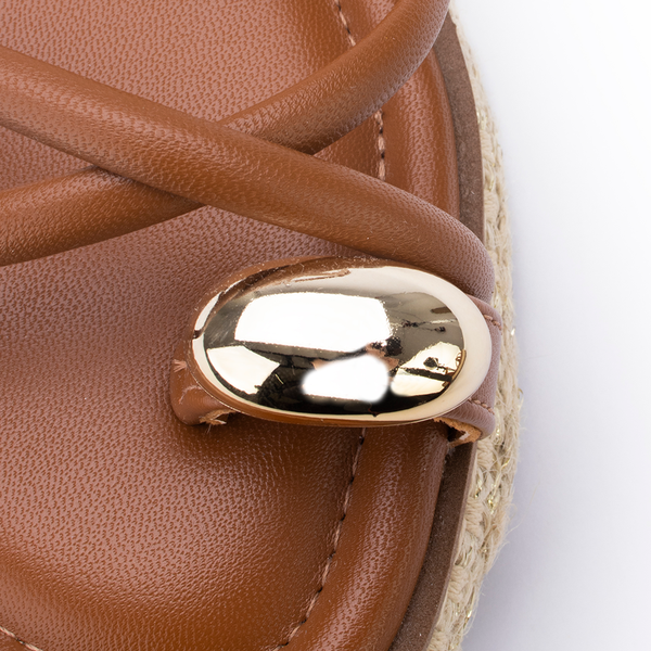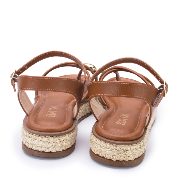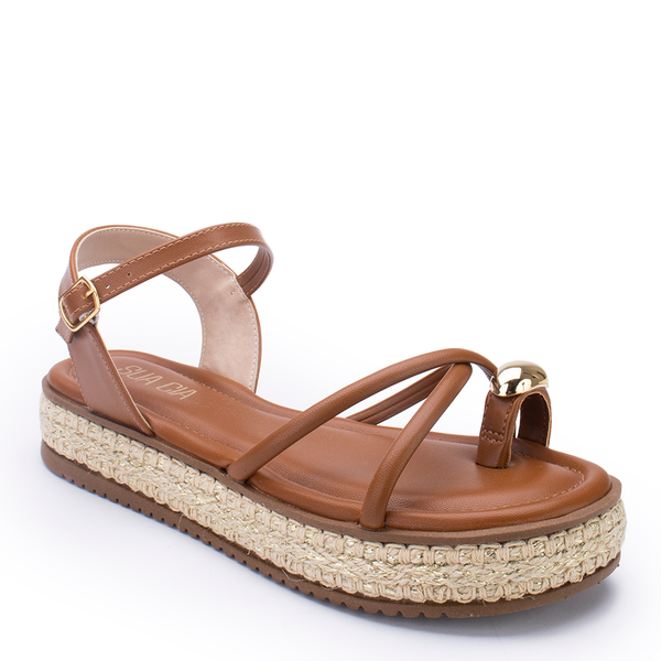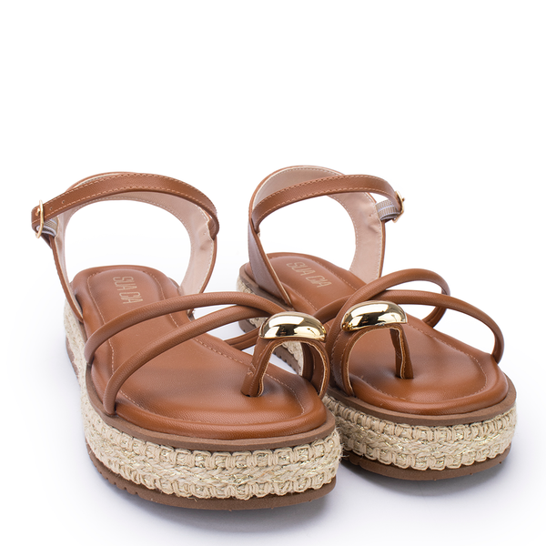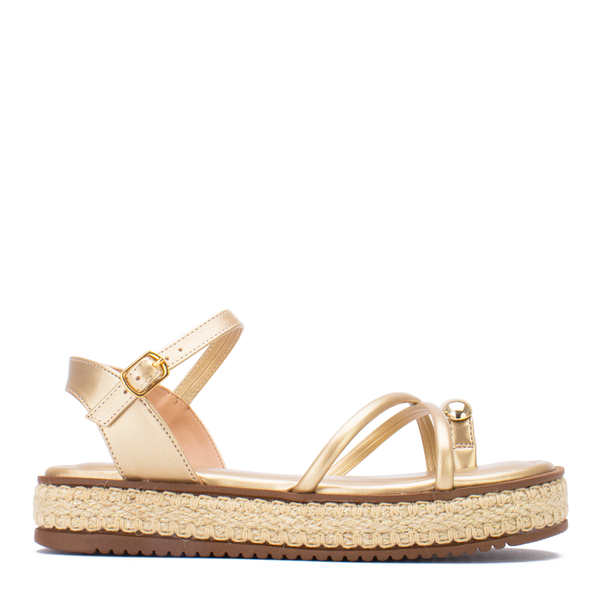 Sandália Flatform Tiras Slim Transpassadas Detalhe Dourado Sua Cia Casca