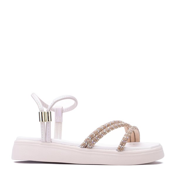 Charmosa e confortável, com tiras delicadas em pedrarias cintilantes e fechamento ajustável. Perfeita para deixar o look das pequenas ainda mais elegante e cheio de brilho!
