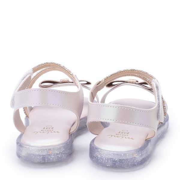A sandália infantil Mini Sua Cia Baby une estilo e praticidade, com design moderno em tom perolado, detalhe em laço delicado e solado com luz de LED que pisca a cada passo. Perfeita para meninas que adoram conforto, brilho e diversão em qualquer ocasião.
