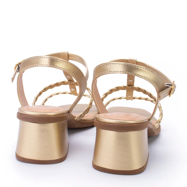 Aposte na elegância e no conforto da Sandália Sua Cia com salto bloco. Com design moderno, acabamento metalizado dourado e tiras trançadas que garantem charme extra, ela é a escolha perfeita para looks casuais ou sofisticados. Versátil e estilosa, combina com vestidos, saias, jeans e muito mais, sendo ideal para o dia a dia ou ocasiões especiais.